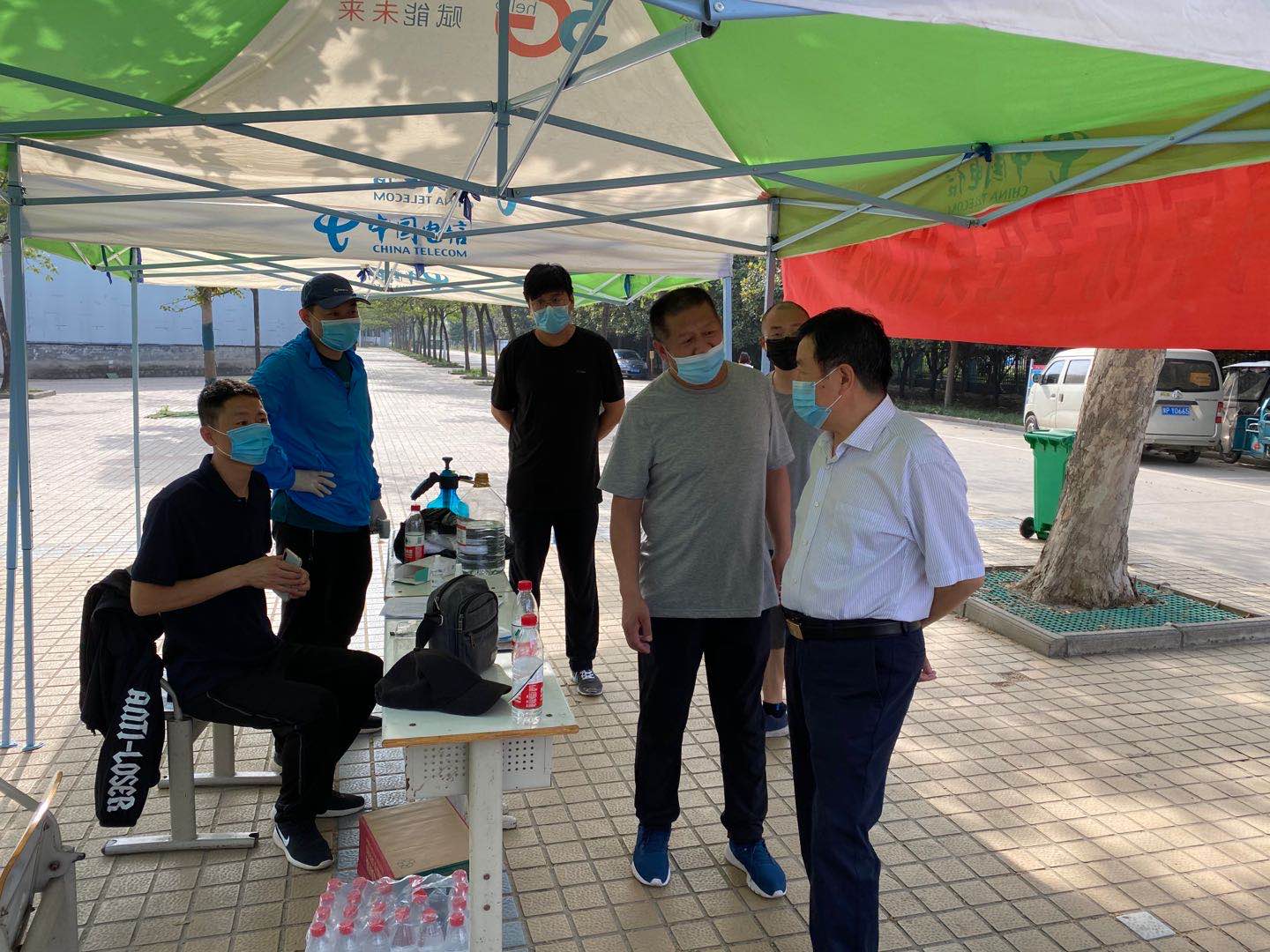 职业技术学院书记刘书记到体育学院复学检查点进行询问跟检查。体育学院徐书记做出了询问解答,并进行汇报。